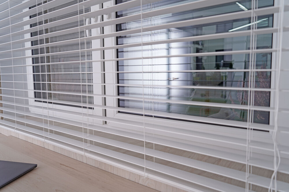 Moderna, vita PVC-persienner, måttbeställda. Perfekta för vardagsrum, kök och kontor, reglerar de effektivt ljuset samtidigt som de ger avskildhet. De är lätta att rengöra och fuktbeständiga, vilket gör dem till en praktisk lösning för alla interiörer. Finns med en mängd olika styralternativ – manuella eller elektriska.